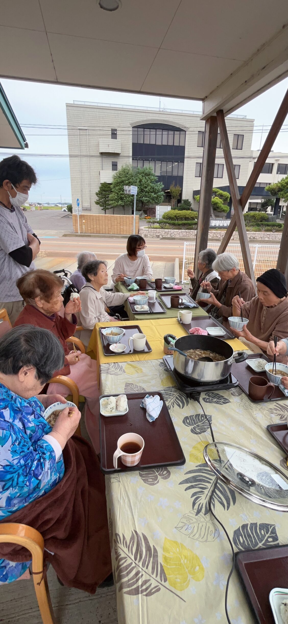 2025.10.15 夏が終わり、季節は秋へと移り変わりました🍂 だんだん寒くなってまいりますが、利用者様・職員一同、元気に過ごしてまいります(__) さて、かくれんぼ では、10月14日に外で「芋煮会」を行いました!! 大きなお鍋から、汁と具材を茶碗に盛りつけています♪ 大きなお鍋をテーブルで囲み、利用者様・職員一同、少し冷たい風を感じつつ、温かい芋煮を召し上がりました(^^♪ 皆様、芋煮会🥔🍲を楽しまれたようで、とても嬉しいです😊 前の記事 一覧に戻る 次の記事はありません