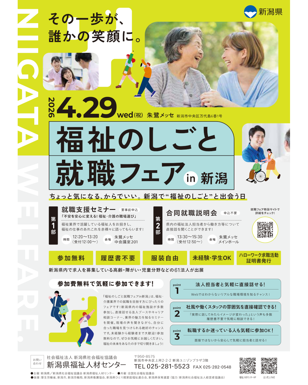 4月29日(水)新潟県福祉人材センター様主催「福祉のしごと就職フェアin新潟」